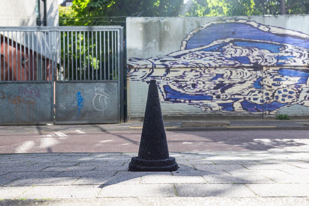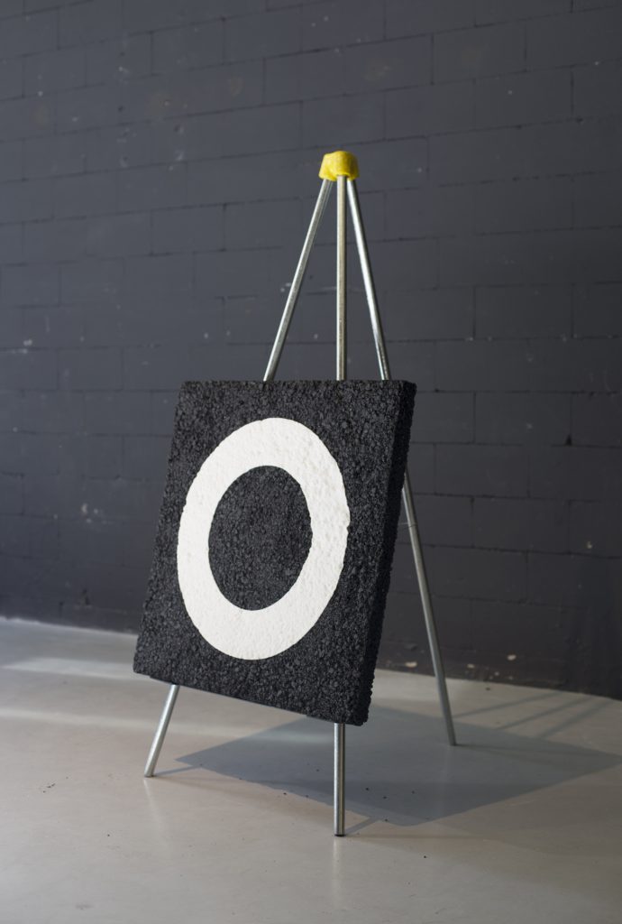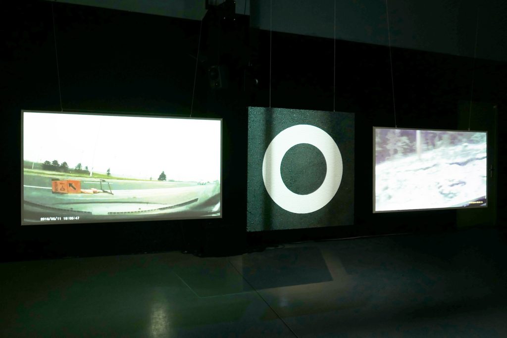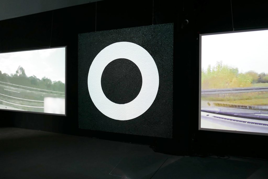 A dance on the highway, reconstructed from found footage. With two surround-audio installations echoing the movement of the dance, accompanied by several asphalt objects inspired by roadside-memorials and safety objects as well as by the strong smell of asphalt in the room.